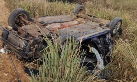 Carro capota após sair da pista e deixa três feridos na SE-339, em Nossa Senhora das Dores
