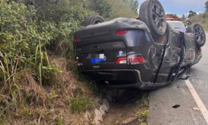 CARRO CAPOTA E DEIXA TRÊS PESSOAS FERIDAS NA SE-065, EM SÃO CRISTÓVÃO
