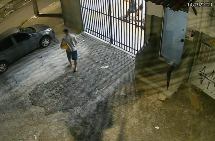 As imagens mostram o momento em que o suspeito passa com um capacete em frente ao local, minutos antes do oficial estacionar sua motocicleta. Logo após a moto ser parada, a câmera registra quando o autor retorna e furta o veículo, que não possui rastreador e não tem seguro.