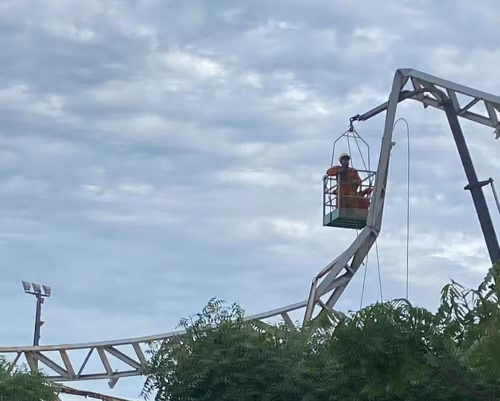 Segundo a assessoria de comunicação da prefeitura, a estrutura estava sendo removida quando desabou.