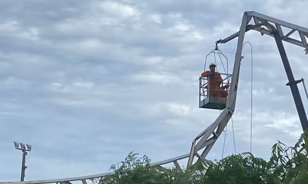 Trabalhadores ficam presos em guindaste após estrutura de ginásio ceder na Barra dos Coqueiros
