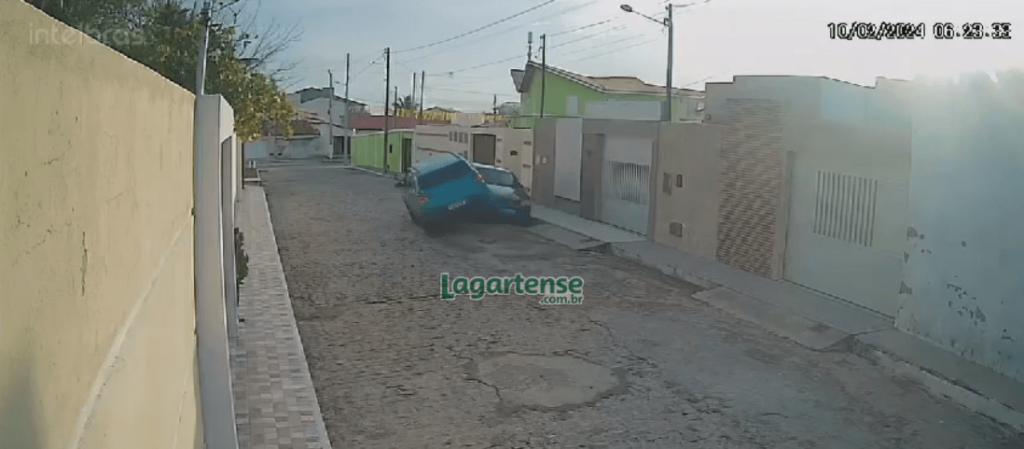 No último sábado,10, uma câmera de segurança flagrou o momento em que um carro colidiu contra outro que estava estacionado em uma rua da Praia da Caueira.