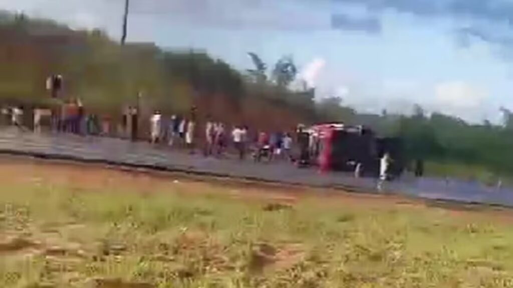 Ainda de acordo com a polícia, parte da carga foi saqueada. A Polícia Militar está fazendo a segurança do restante do material, até que seja removido.