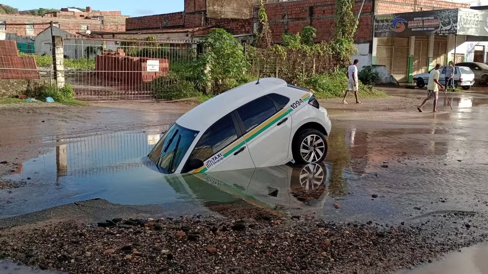Um carro caiu em um buraco localizado na Avenida Alexandre Alcino, no Bairro Santa Maria, na Zona Sul de Aracaju, nas primeiras horas da manhã desta quarta-feira (8). Agentes da Superintendência Municipal de Transportes e Trânsito (SMTT) estão no local. Não houve feridos.