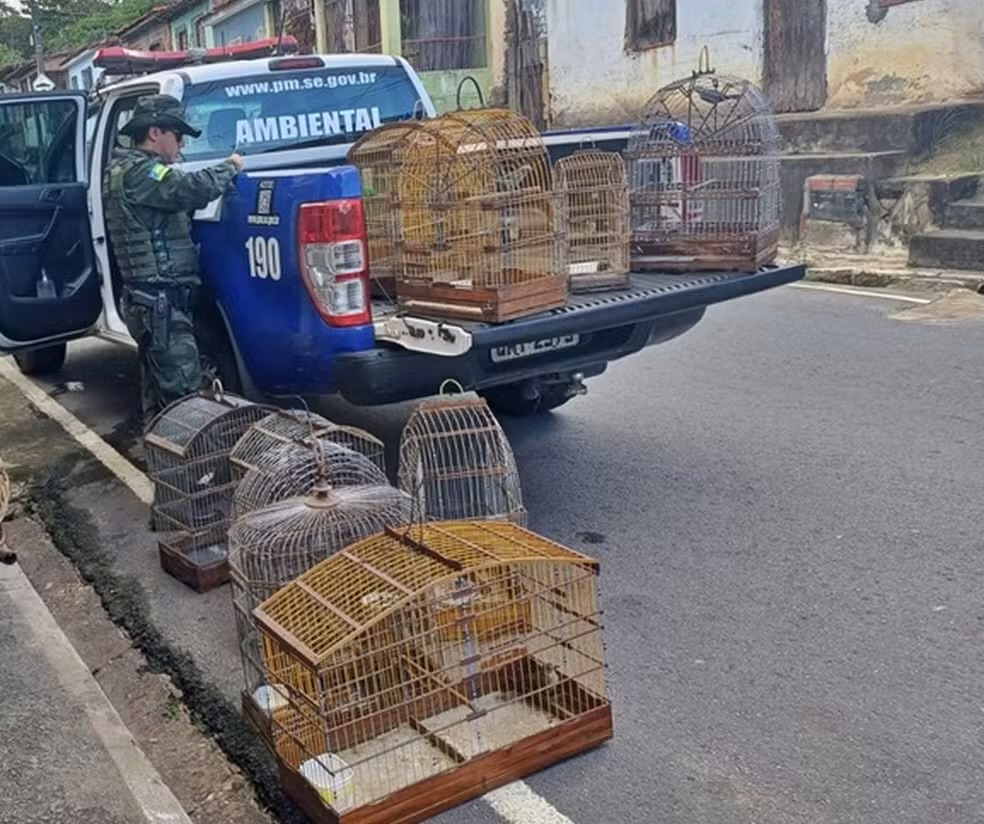 11 aves silvestres mantidas em gaiolas são apreendidas em Japaratuba