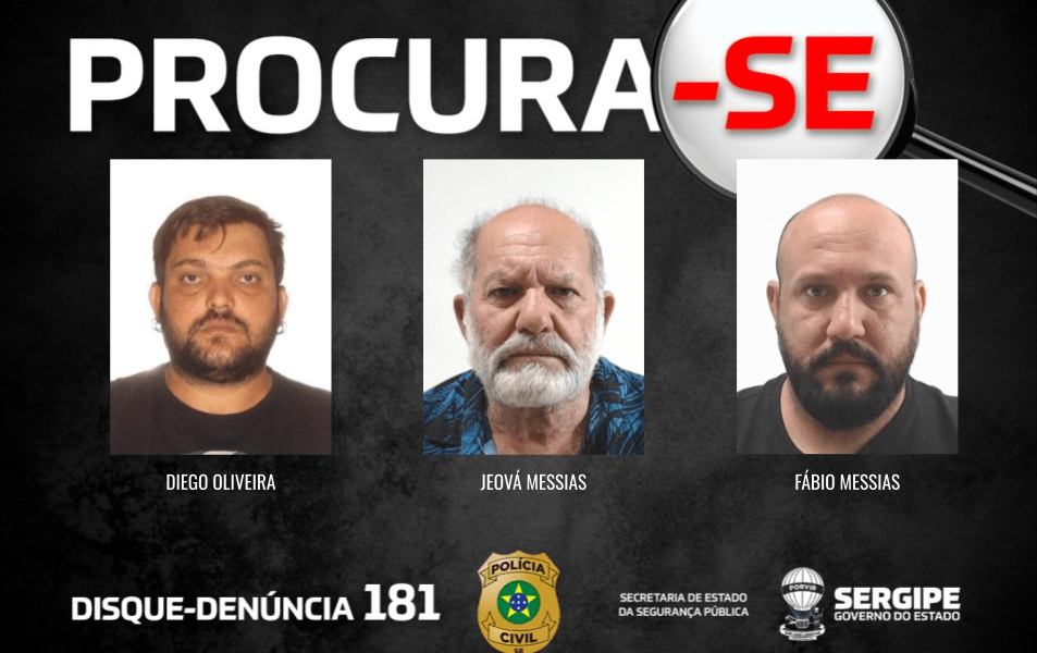 A Polícia Civil, por meio do Centro de Operações Policiais Especiais (Cope), divulga nesta sexta-feira, 25, imagens de três homens investigados por envolvimento na morte de Marcelo Alves Carvalho, de 34 anos, crime ocorrido na cidade de Umbaúba no dia 8 de junho deste ano. São considerados foragidos: Fábio Messias, conhecido como “Fábio Cigano”; Jeová Messias; e Diego Oliveira Carvalho.