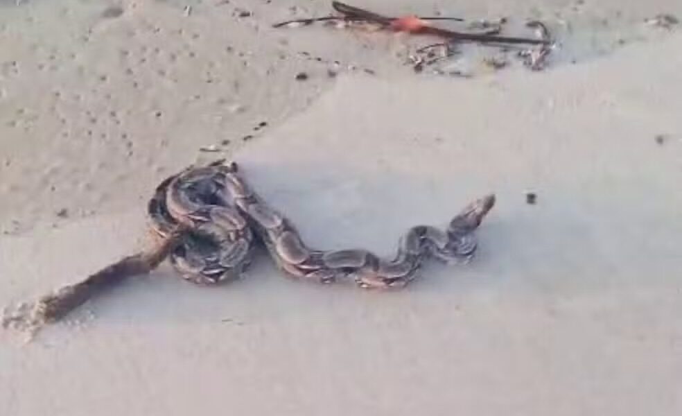 Jiboia é encontrada por banhistas na Praia da Atalaia em Aracaju