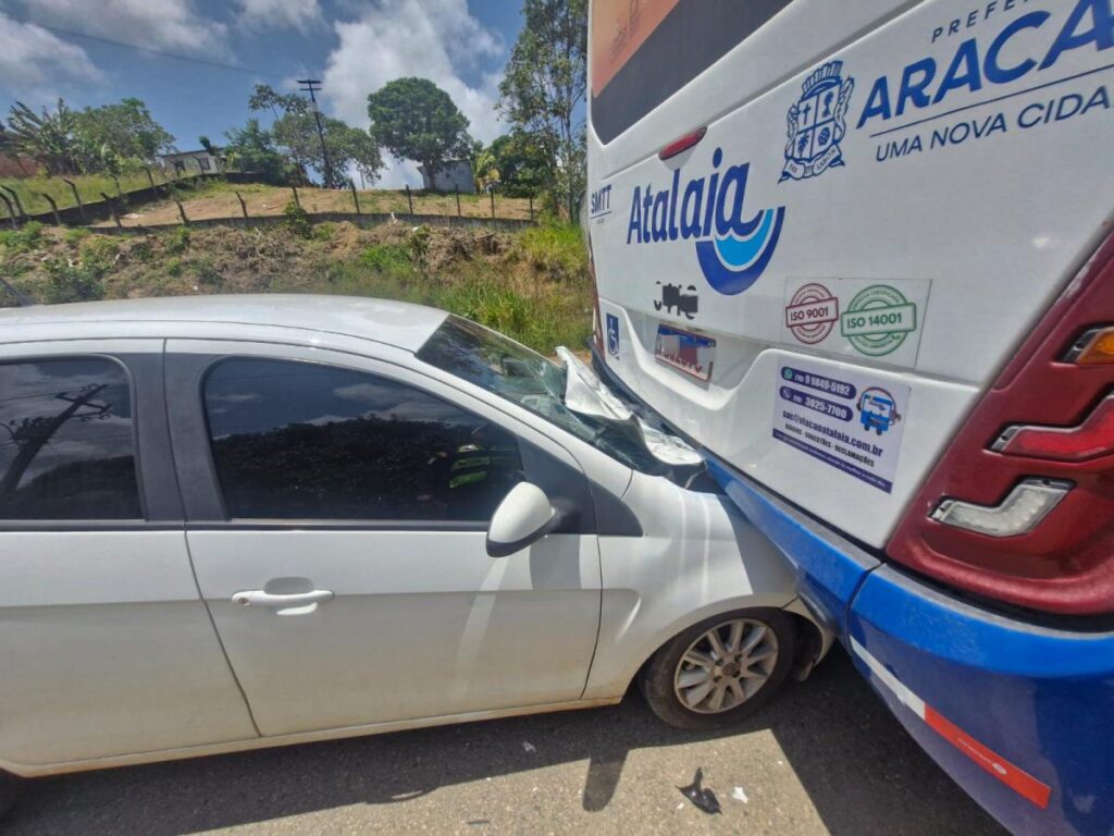 O ônibus trafegava no sentido BR-101/Centro de São Cristóvão quando, próximo ao acesso do povoado, foi atingido na traseira pelo carro, que seguia na mesma direção.