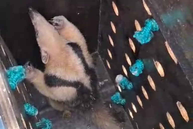 Um tamanduá foi resgatado na manhã desta terça-feira (14) após ser encontrado em uma praça no município de Barra dos Coqueiros.