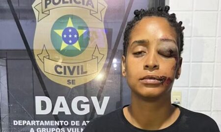Uma mulher ficou com o rosto desfigurado após ser agredida durante uma briga, que teria sido motivada por homofobia, em uma lanchonete...